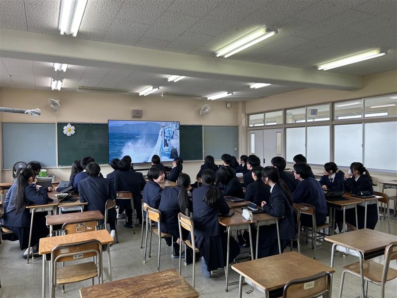 本校におきまして最大級の大型モニターで、教育活動全般における視聴覚教材として活用させていただきます。