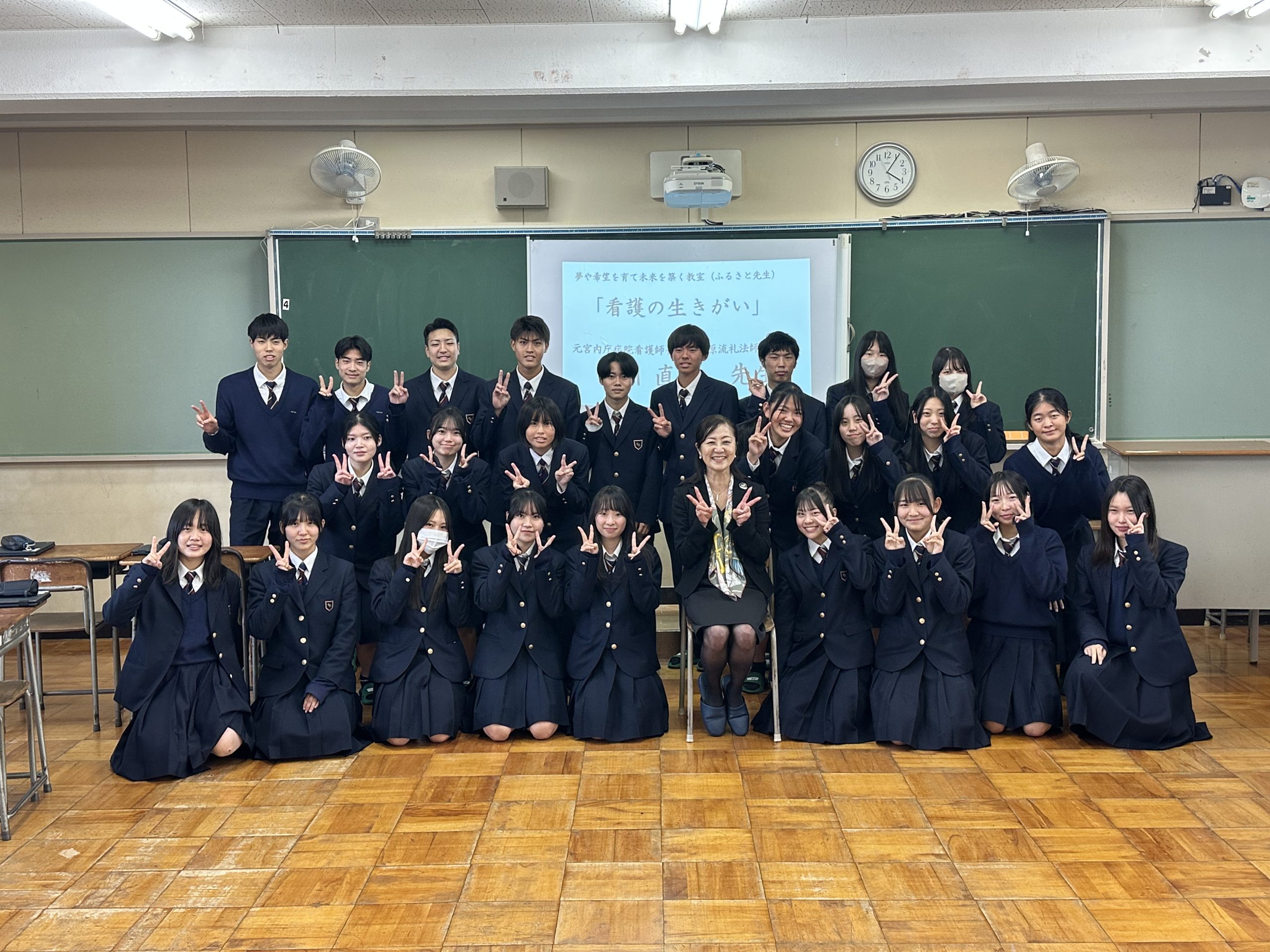 中川先生の講義では、「看護師」という職業について、その責任や使命感をお聞きし、その尊さについて考える機会となりました。また、看護のやりがいについても十分に理解することができました。生徒たちの質問にも丁寧にご回答いただき、看護の道を志す生徒たちにとって、貴重な時間となりました。